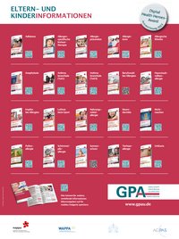 Auf dem Info-Poster für das Wartezimmer finden Sie eine Auswahl der als Flyer vorliegenden Eltern- und Kinderinformationen. Mit diesen Flyern möchten wir nicht nur die Eltern, sondern gerade die betroffenen Kinder und Jugendlichen ansprechen und qualifizierte Informationen zu allergologischen Themen geben.